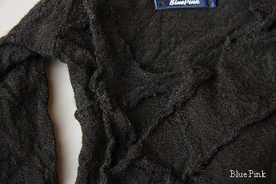 画像の通りフロント部分はランダムに模様を付けております。末端は自然なほつれを見せる為に態と切りっぱなしにしております。