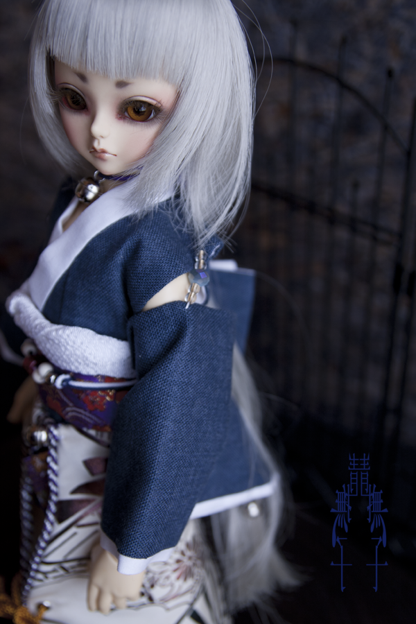 ドルパ35での販売物その2です。 SDMidiサイズのセット服をお作りしました。 計3セットです。 セット内容 1:ネックコルセット 2:カットソー 3:腰帯 4:腰紐 5:パンツ 以上5点です。 モデルはSDMidi上村稔です。 ネックコルセット 本革にてお作りしました。 茶色の本革をベースにし、柄入り白革と赤茶の革にて周りを飾っています。 フロントは鹿紐を使用しています。 紐を外しての脱着も可能ですが、ヘッドを外して着用した方が形は崩れにくいと思います。 ふちはコバにて処理を施しています。 後ろには青、赤それぞれの房をつけました。 ランダムにお入れしています。 画像のとおり、3種とも若干ずつ色合いが異なります。 当日お好きなものをお選びください。 また、革ですのでキャストへの色移りをする可能性がありますので、長時間の着用にはご注意ください。 カットソー 黒の綿生地をメインに、赤のシフォンを裏に付けました。 ところどころラメ加工が施してありますので、光の加減によりキラキラと反射します。 赤シフォンは薄い生地のため、お取り扱いにはご宙ください。 淵を絹紐にて飾り付けました。 腰の部分は紐を長く残していますので、画像のように腰に巻き付け着用してください。 パンツ 表は黒銀ベースのゴブラン織り、裏は古い着物生地を使用しています。 ゴブラン織りはとても厚地の生地ですので、ハマグリのようなぽっくりとしたフォルムに仕上がりました。 裏地は水洗いし汚れ等をおとしていますが、古い着物生地を使用していますので、おとしきれなかった汚れや小さな穴等がある可能性があります。 ご了承ください。 画像のように、両サイドの赤紐にて脱着可能です。 腰帯 リボンやレース等でメインを作りました。 両サイドはフリンジやレースにて飾りつけています。 腰にゆるく巻きつけ飾ってください。 画像にはありませんが、青い房紐も同様に腰に二度巻き付け飾りつけてください。 PR |