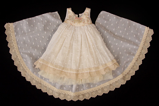 オフホワイトのガーゼをメインに胸元は薔薇柄の綿ローン、
