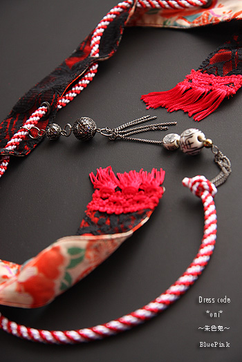 普通に首に巻いても良いですし丸ひも部分のみを前で結んだり…