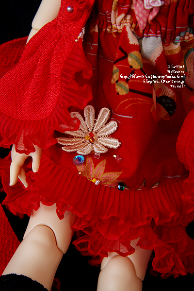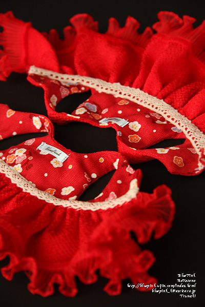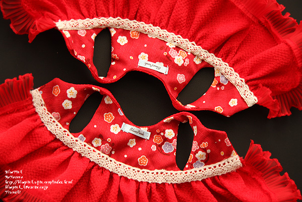 赤のちりめんを使用し裏地は赤の小花模様をあしらった生地を。
