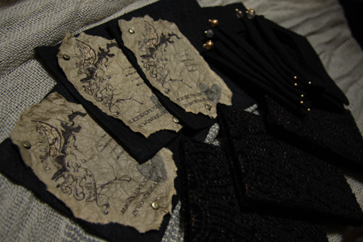 中表紙には両更クラフト紙にロゴを印刷、シワ加工をし古びた感じを出しています。