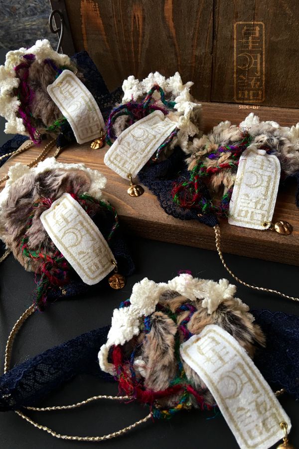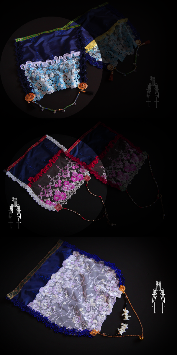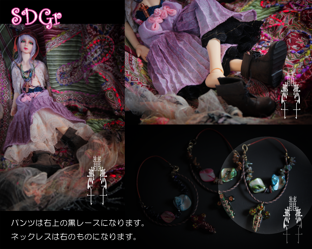 ドルパ35での販売物その3です。 SDGr少年サイズのセット服をお作りしました。 計3セットです。 セット内容 1:レースカットソー 2:ネックレス 3:腰帯 4:パンツ 以上4点です。 ※パイロット帽子はセットに含まれません。 モデルはSDGr上村稔です。 ※モデルが着用していますパイロット帽子はセットに含まれません。 ご注意ください。 カットソーはアイボリーの伸縮性のあるレースニットを使用しています。 淵を絹紐で飾りました。 フロントを紐で縛り留めてください。 後ろはこのようになっています。 ネックレス ネックレスは、シェルパーツ、天然石、ガラスモチーフ等を使用しお作りしています。 カニカン留めです。 画像二枚目のように全て配色が異なりますので、当日お好きなものをお選びくださいませ。 モデルが着用している分は試作となっており、販売は出来ません。ご了承ください。 腰帯 青い厚地の生地を使用しています。 フロントスナップ留めです。 腰に巻き付け留めた後、その上から淵が見えるようにパンツをはかせて下さい。 アクセントになるかと思います。 パンツ フロントの留め具の開閉により脱着可能です。 藤色の綿生地を使用し、裏地にニットチュールを使用しました。 画像にありますとおり、全てチュールとレースの色合いが異なります。 当日お好きなものをお選びください。 また、モデルが着用している分は試作となっており、販売は出来ません。ご了承ください。 説明にありますとおり、全てのセット若干ずつデザイン(色合い)が異なります。 同じ組み合わせはございません。 すでにこちらでランダムにお選びし、ラッピングしておりますので、 当日は実際見てお好きなセットをお選びください。 |
