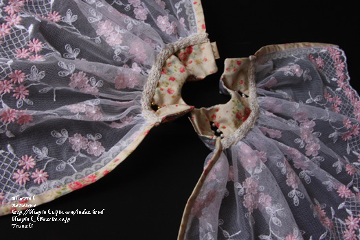 裏は上部分のみ。スカート部分は花柄のチュールレースです。