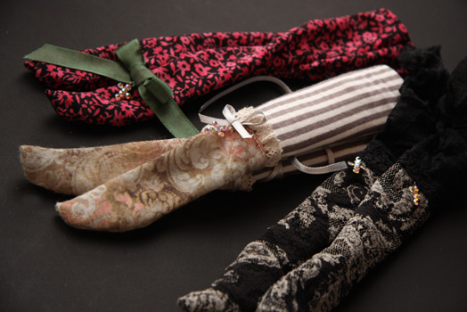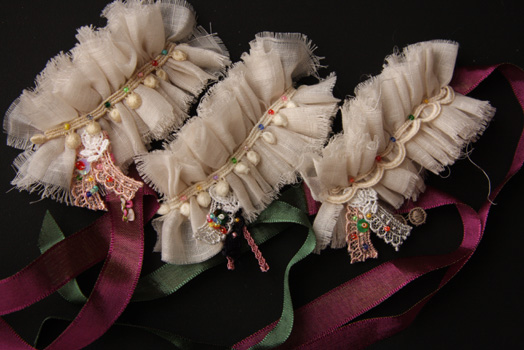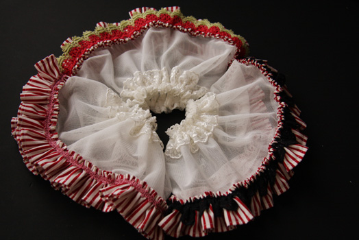 チュールレース、ストライプ生地、各種レースを使用しています。